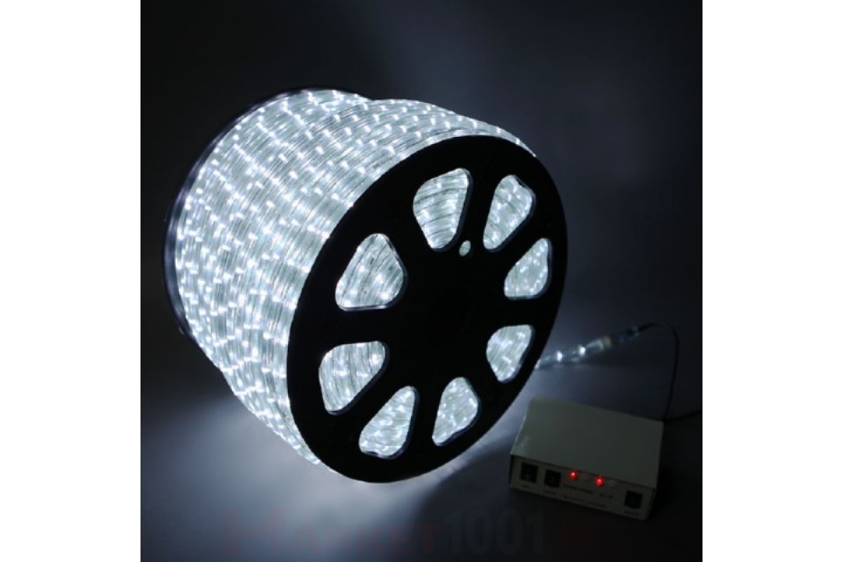 Чейзинг (5 контроллеров в комплекте), цвет светодиодов — белый, 3-х проводной, диаметр 13 мм., свечение 360°, кратность реза 2 м., 4,8 Вт/м. 36 светодиодов на метр.