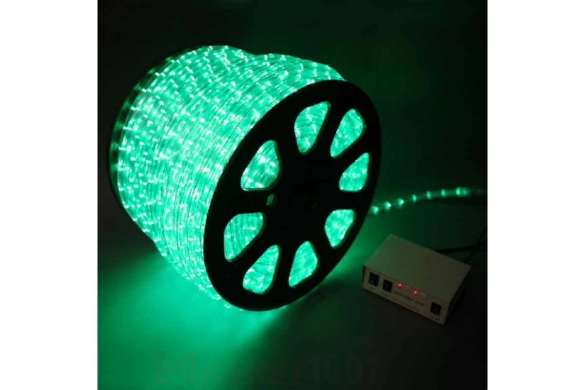 Чейзинг (5 контроллеров в комплекте), цвет светодиодов — зеленый, 3-х проводной, диаметр 13 мм., свечение 360°, кратность реза 2 м., 4,8 Вт/м. 36 светодиодов на метр.