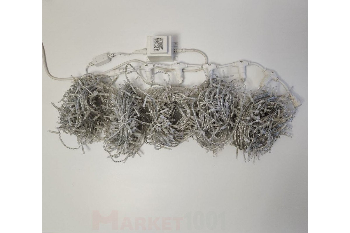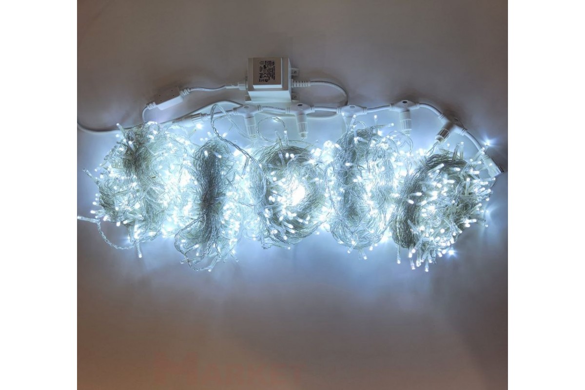 Светодиодный клип-лайт "Спайдер 5-ти лучевой" Flash (с мерцающим диодом), цвет белый, мерцает белый диод, 24V, без контроллера, мощность 100W, трансформатор в комплекте, прозрачный провод, 1000 светодиодов в комплекте, комплект 100 метров, рабочая температура -40°C до +60°C