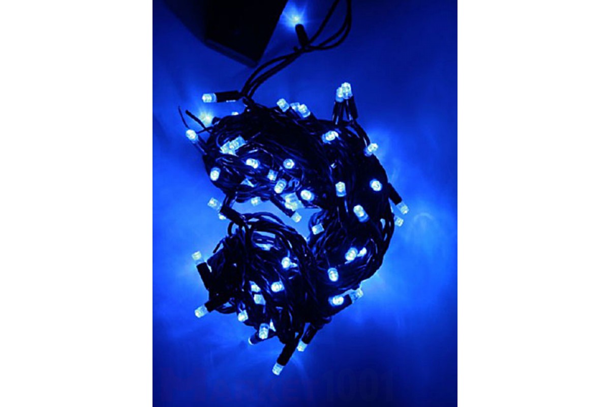 Светодиодная гирлянда, 10 метров, 100 светодиодов, цвет синий, 220В, с возможностью стыковки нескольких гирлянд, Без контроллера, на резиновом кабеле, черного цвета. Мощность - 10W, cтыкуются в единую цепь -10шт.