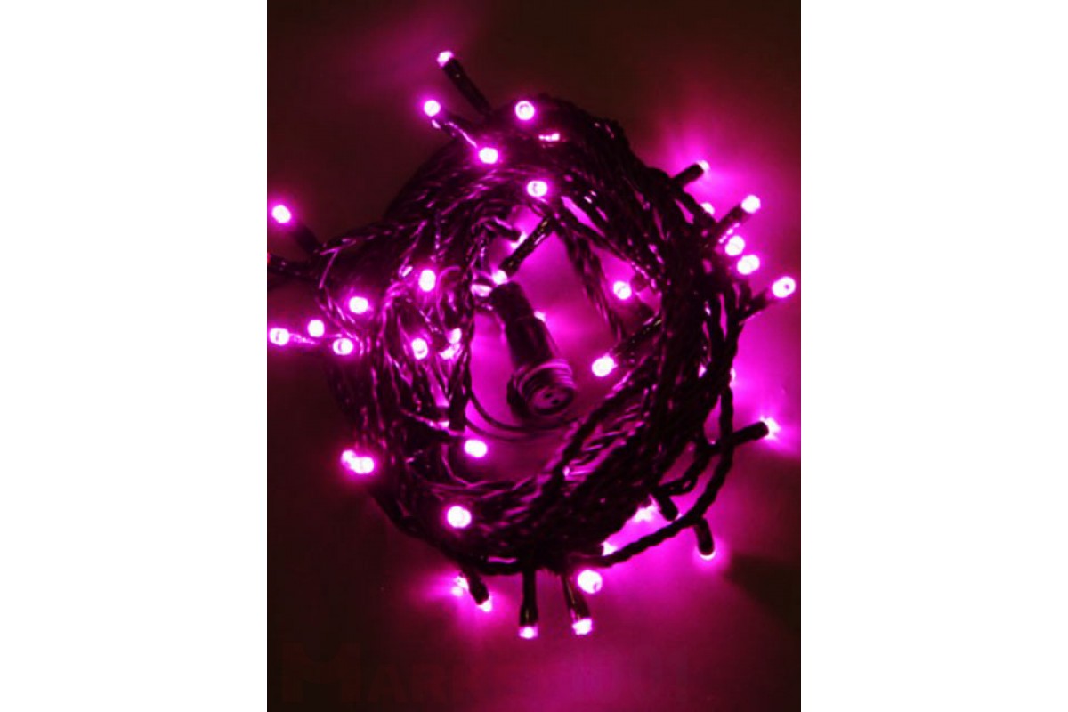 Светодиодная гирлянда, 20 метров, 200 светодиодов, цвет светодиодов розовый, 220В, с контроллером, кабель ПВХ, черного цвета. Мощность - 20W, не стыкуются в цепь.