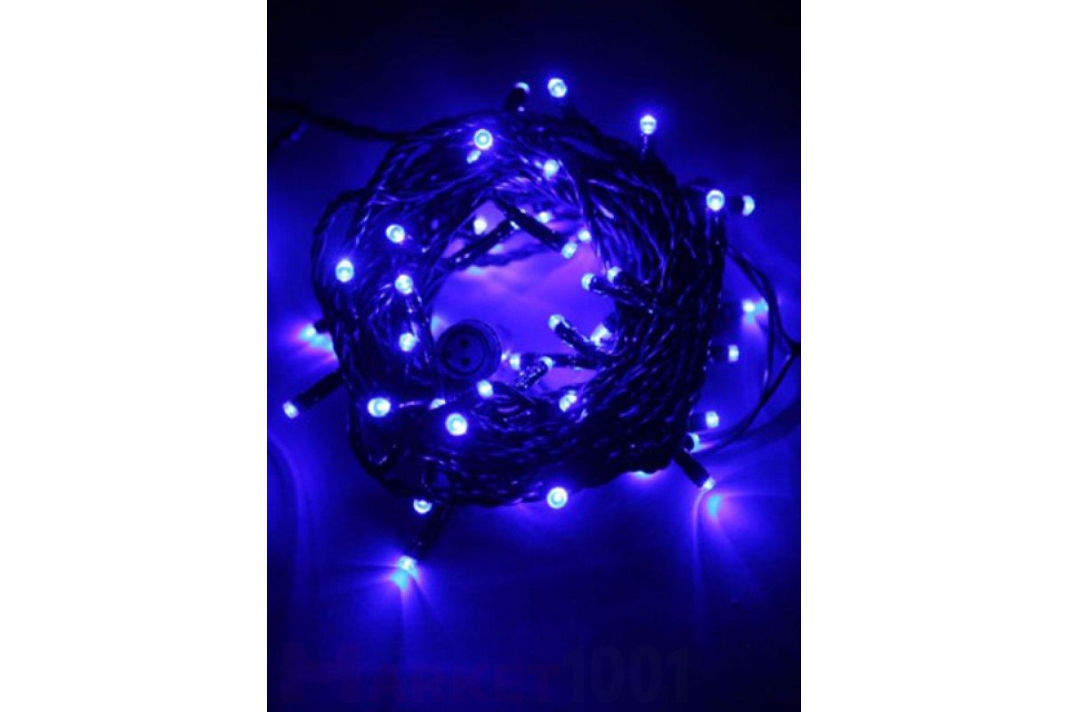 Светодиодная гирлянда, 20 метров, 200 светодиодов, цвет светодиодов синий, 220В, с контроллером, кабель ПВХ, черного цвета. Мощность - 20W, не стыкуются в цепь.