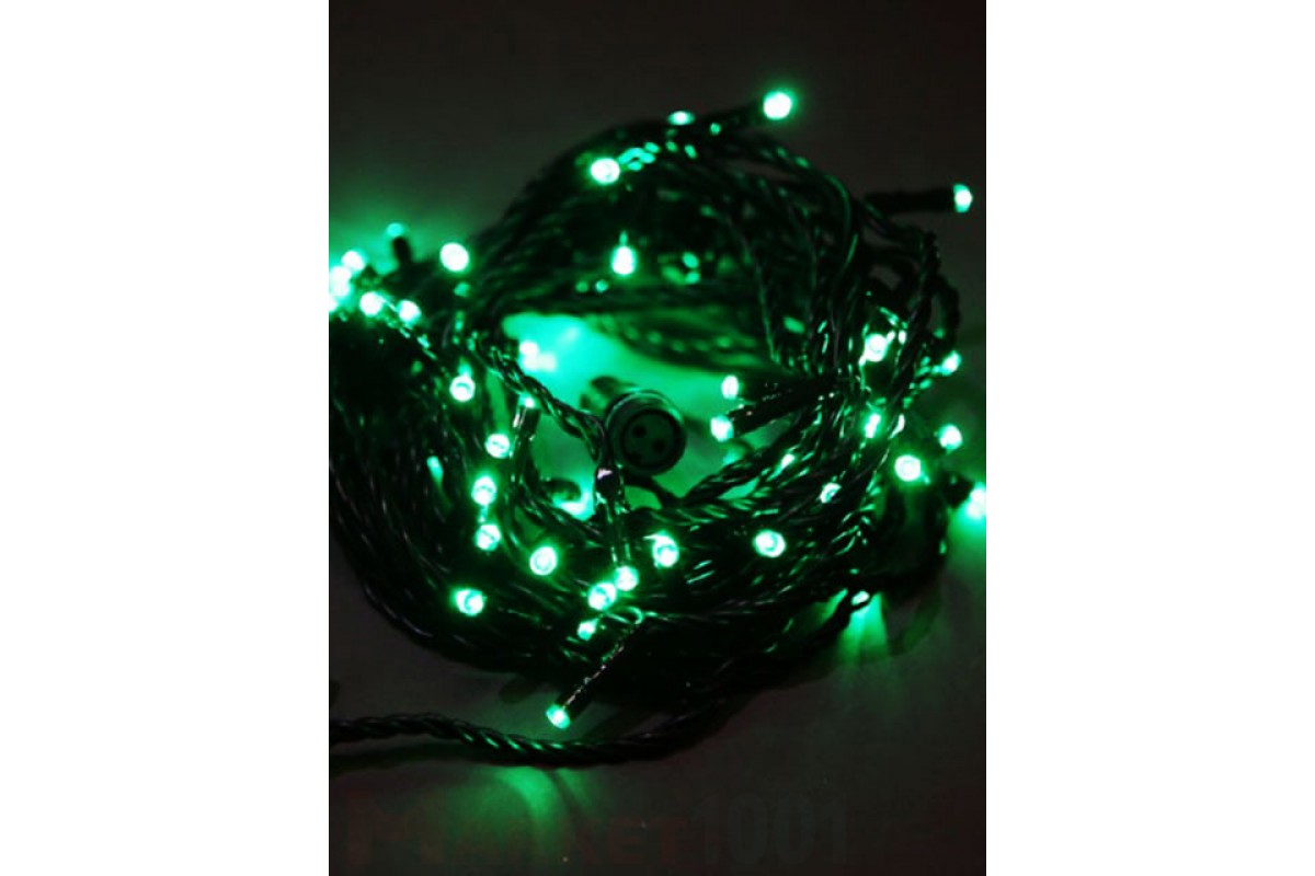 Светодиодная гирлянда, 20 метров, 200 светодиодов, цвет светодиодов зеленый 220В, с контроллером, кабель ПВХ, черного цвета. Мощность - 20W, не стыкуются в цепь.