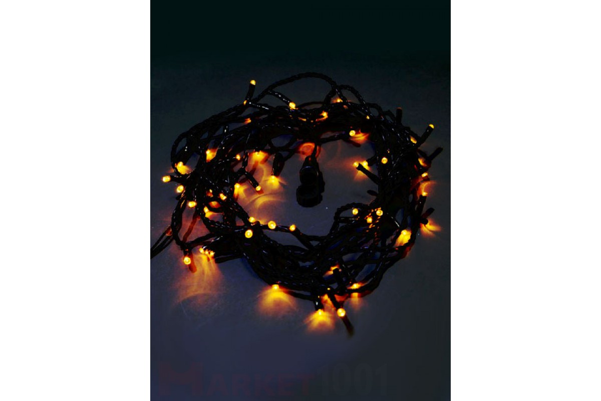 Светодиодная гирлянда, 6 метров, 60 светодиодов,цвет желтый, 220В, с возможностью стыковки нескольких гирлянд,без контроллера. Кабель ПВХ черного цвета, Мощность -4.8W, cтыкуются в единую цепь 12-15шт.