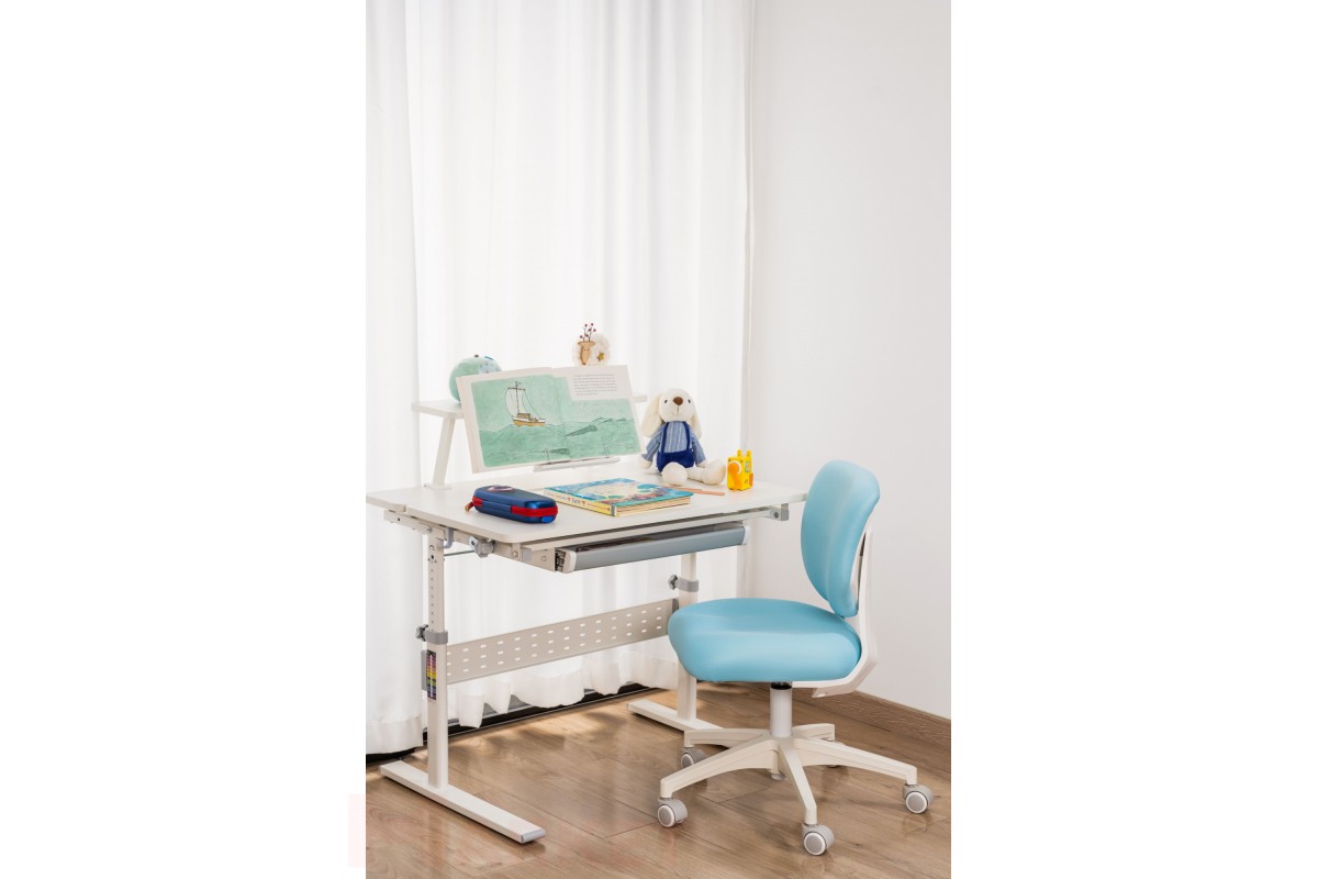 Простая регулировка высоты сиденья и высоты спинки. Кресло обито прочной и безопасной в эксплуатации тканью спокойных пастельных оттенков. В летние месяцы не будет жарко, а в холодное время года сидеть на кресле будет тепло и комфортно.