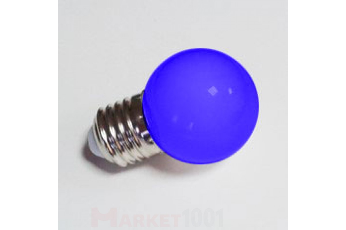 Светодиодная лампа для белт-лайта - шарик с цоколем Е27, 5- диодная, D - 45 мм, синяя колба из ударопрочной пластмассы , мощность 0.5 Вт.