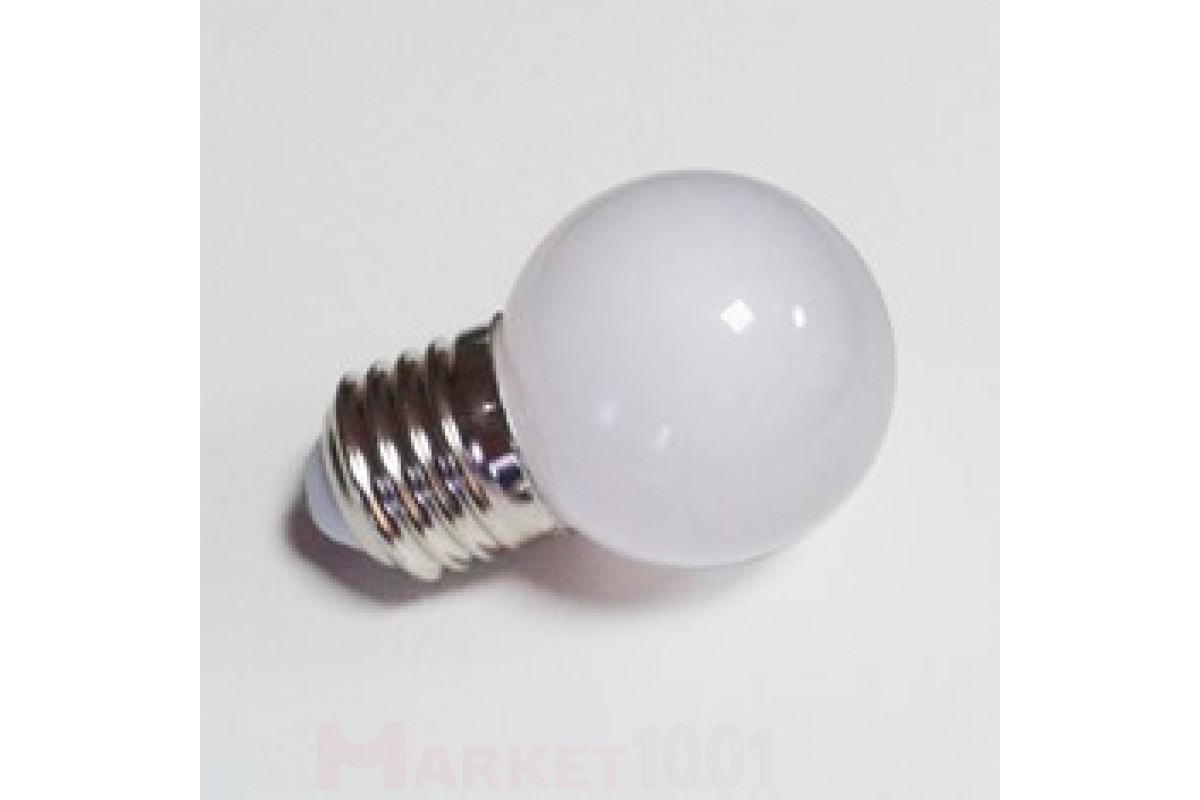 Светодиодная лампа для белт-лайта - шарик с цоколем Е27, 5- диодная, D - 45 мм, белая колба из ударопрочной пластмассы , цвет - теплый белый, мощность 1 Вт.