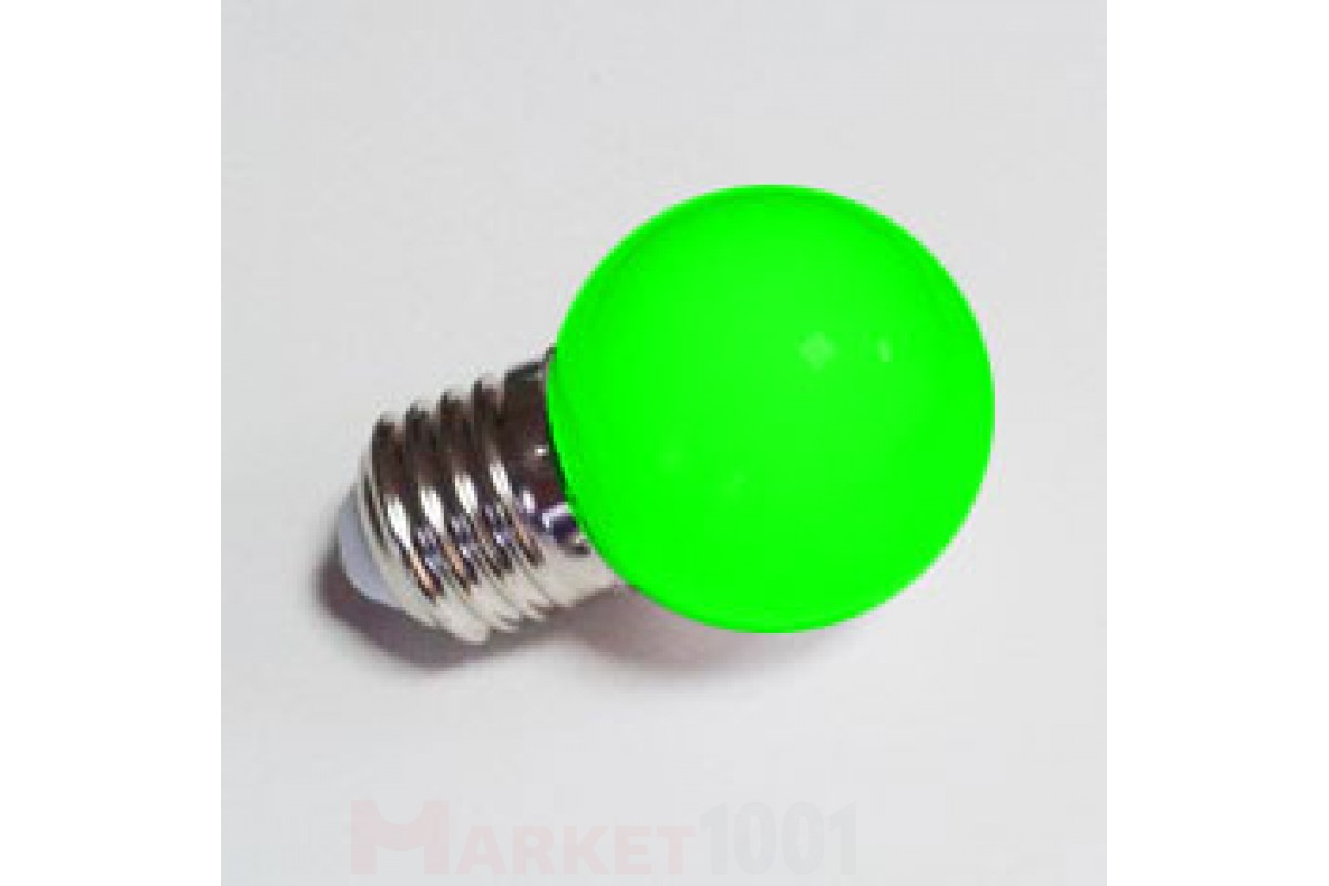Светодиодная лампа для белт-лайта - шарик с цоколем Е27, 5- диодная, D - 45 мм, зеленная колба из ударопрочной пластмассы , мощность 0.5 Вт.