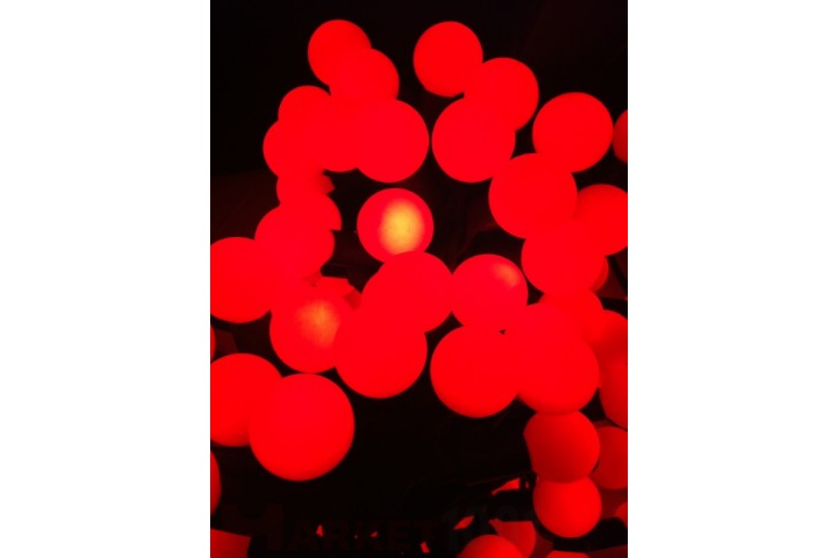 Шарики "maxi", 5 метров, без контроллера, 20 светодиодов, 220В, цвет красный, диаметр шарика 40 мм, кабель черного цвета , lдля дома и улицы IP65, с возможностью стыковки нескольких гирлянд в единую цепь до 10 шт. Мощность — 8W. Шнур для подключения (до 10 гирлянд) приобретается отдельно.