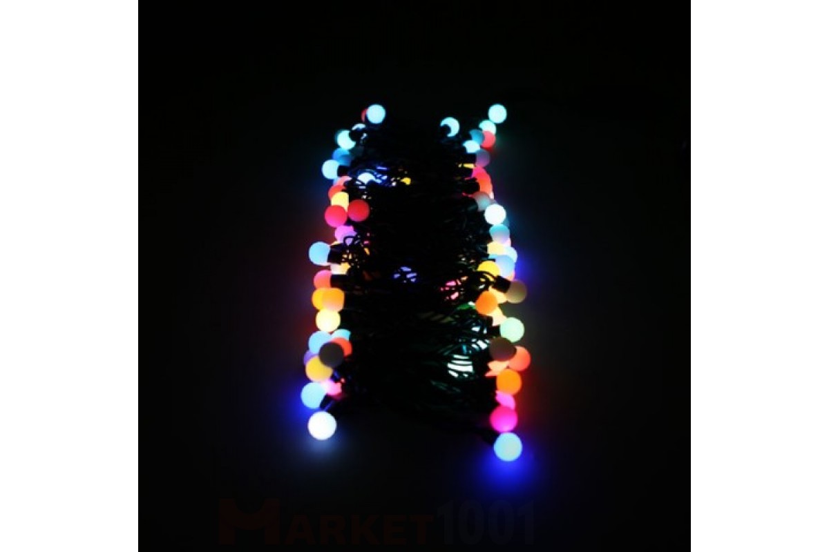 Мультишарики "mini", 7,5 метров, 50 RGB-светодиодов, 220В, диаметр шарика 23 мм. Мощность - 8 Вт, на кабеле черного цвета, для улицы и помещений IP65, соединяются до 15-и штук. Шнур для подключения (до 15-и гирлянд) в комплекте.