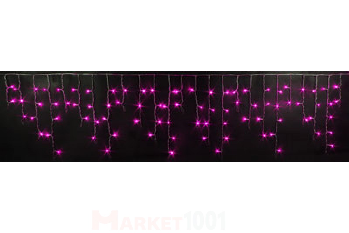 Световая (светодиодная) бахрома 3x0,5 м. Розовая. Прозрачный ПВХ кабель.