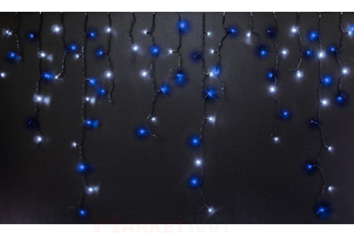 Световая (светодиодная) бахрома 3x0,5 м. Синий+Белый. Белый резиновый кабель.