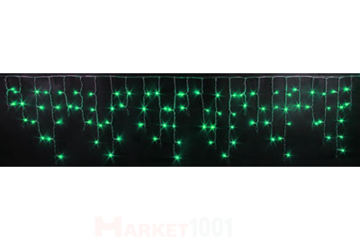 Световая (светодиодная) бахрома 3x0,5 м. Зеленая. Прозрачный ПВХ кабель.