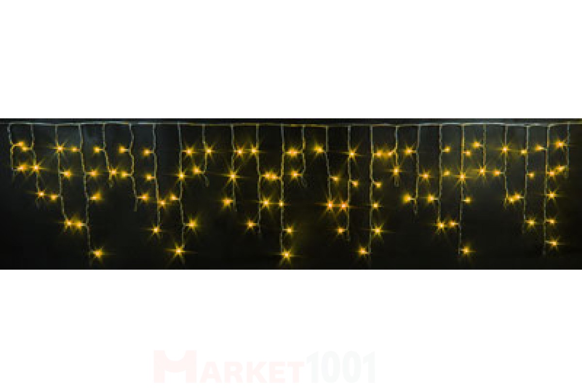 Световая (светодиодная) бахрома 3x0,5 м. Желтая. Белый резиновый кабель.