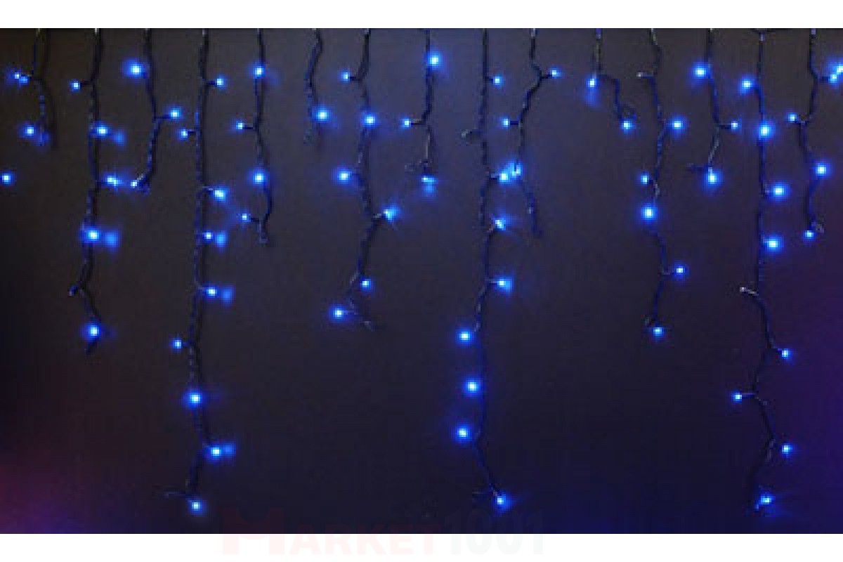 Световая (светодиодная) бахрома 3x0,9 м. мерцающая (FLASH) Синяя. Черный ПВХ кабель.