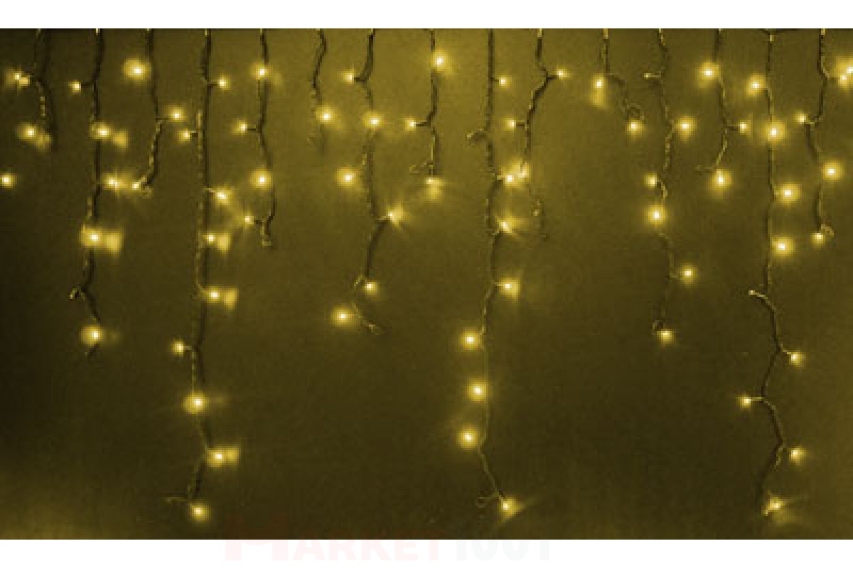 Световая (светодиодная) бахрома 3x0,9 м. мерцающая (FLASH) Желтая. Черный ПВХ кабель.