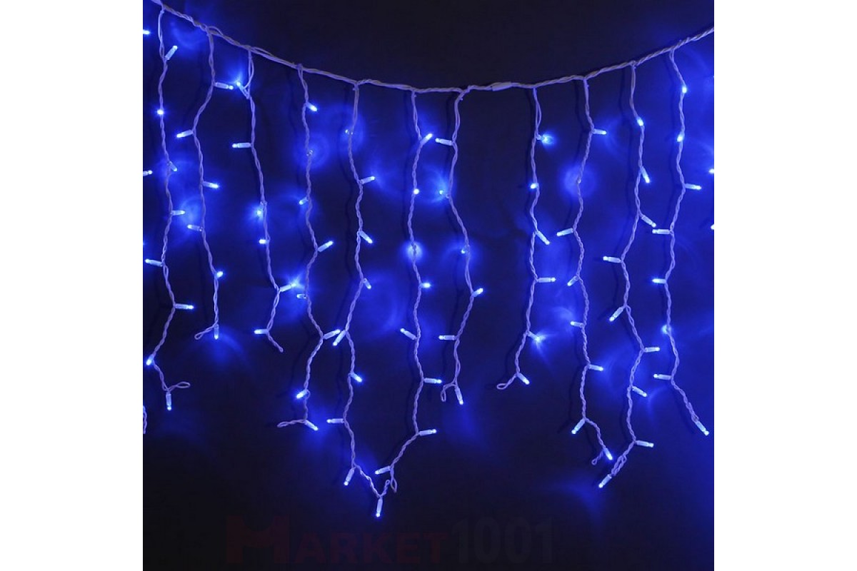 Светодиодная (световая) бахрома 4,8x0,6 м. Синяя. Белый резиновый кабель