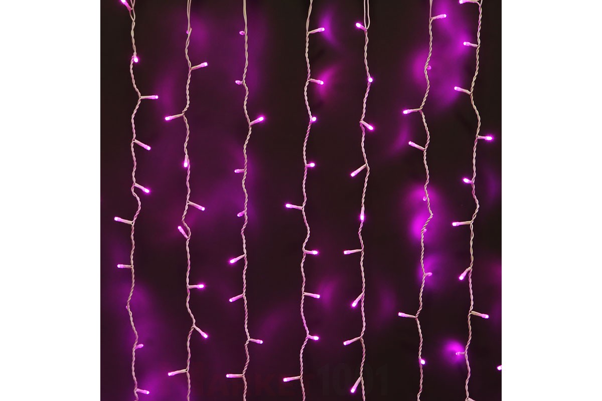 Световой дождь без контроллера, 2x3 м, цвет розовый, общая мощность – 65W, 864 - светодиода, кабель ПВХ белого цвета, 220V, cтыкуются в единую цепь 4-5 шт.
