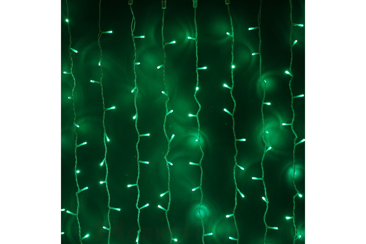Гирлянда световой светодиодный занавес (дождь) 2x3 м с эффектом мерцания FLASH зеленый. Белый ПВХ кабель