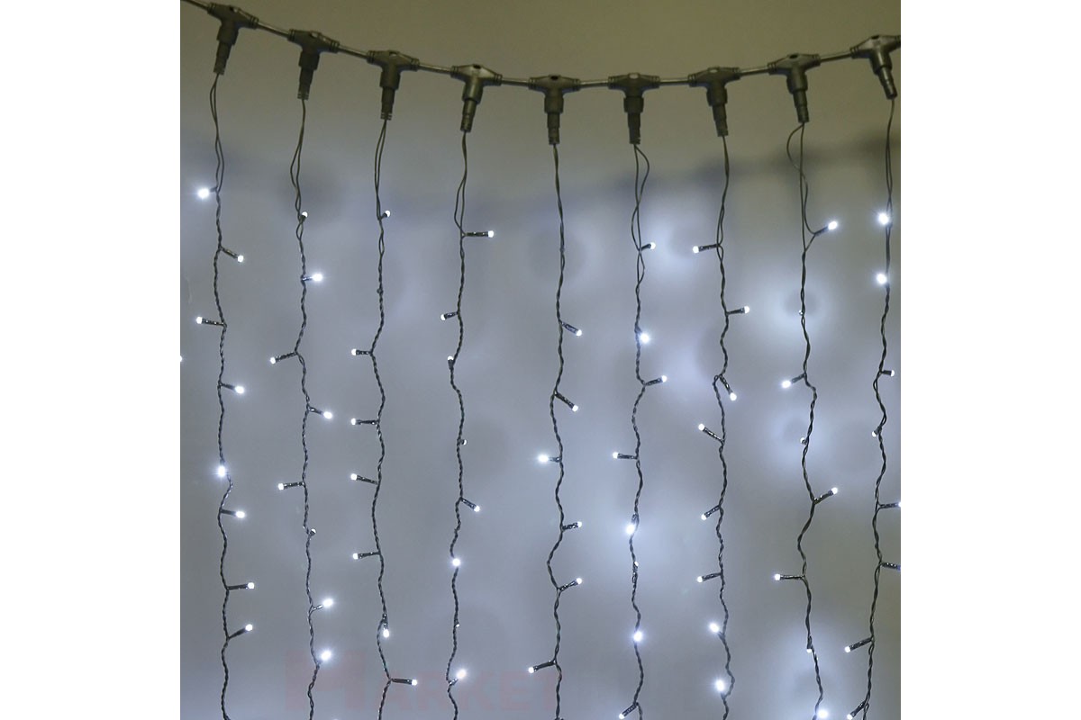 Световой дождь без контроллера, 2x6 м, цвет белый, общая мощность – 100W, 1440 - светодиода, кабель ПВХ, черный, 220V, cтыкуются в единую цепь 2-3 шт.