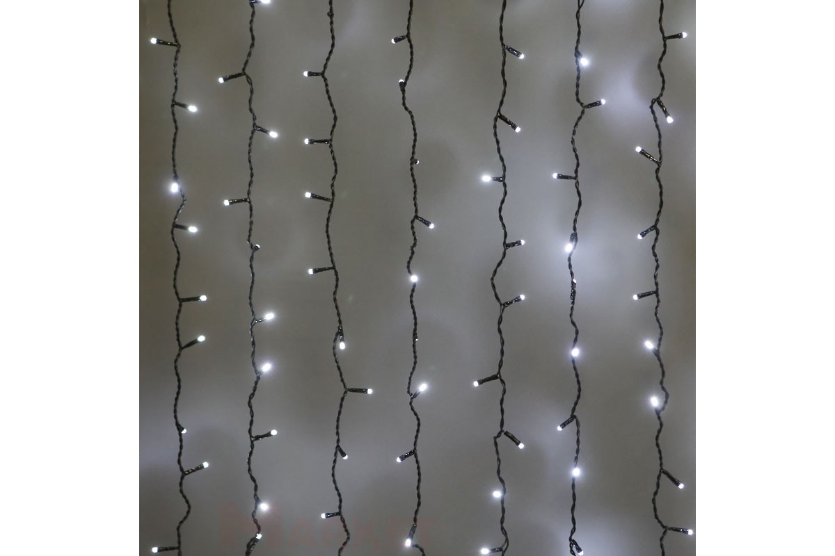 Световой дождь с эффектом мерцания FLASH,цвет белый , 2x6 м, мощность – 100W, 1200 - светодиодов, кабель ПВХ черного цвета, 220V, cтыкуются в единую цепь 2-3 шт.