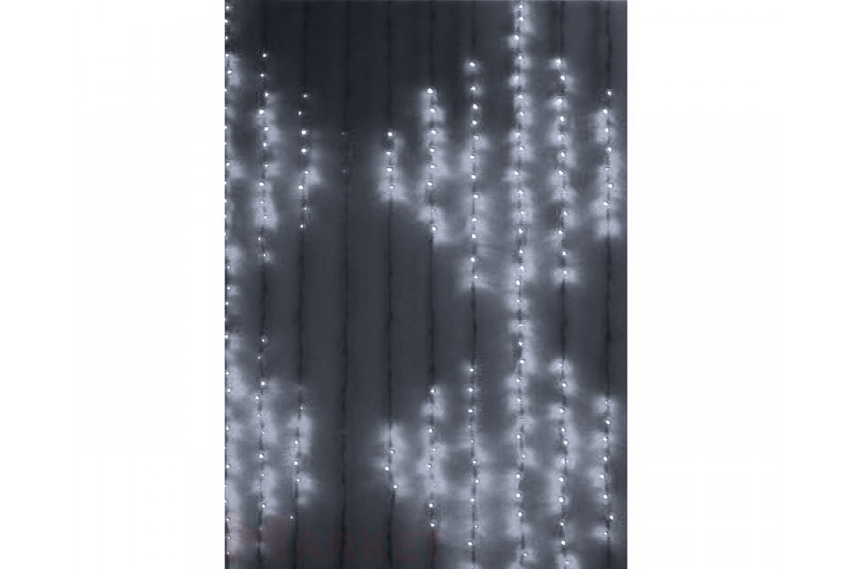 Световой занавес «Водопад» с 3-х канальным контроллером , 2x3 м, цвет белый, общая мощность – 88,75W, 1200 - светодиодов, кабель ПВХ белого цвета, 220V, стыкуются в цепь до 5-и штук.