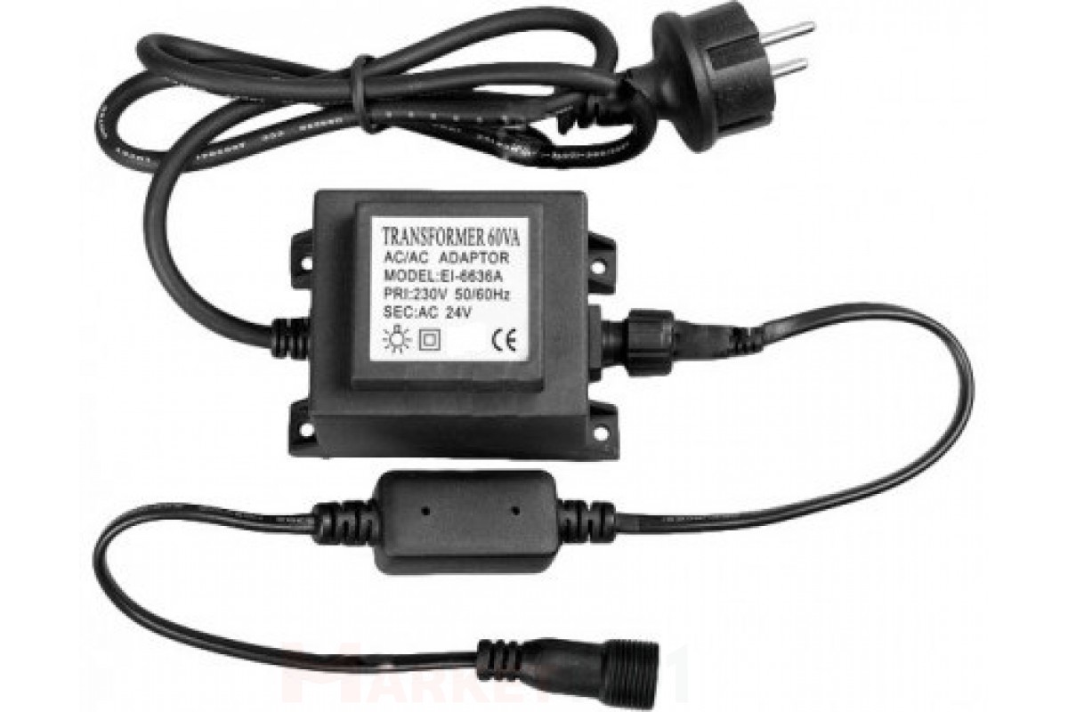 Трансформатор 220/24 В , влагозащита IP65, 60 Вт, шнур подключения с выпрямителем тока 1.5 м, цвет белый или черный.